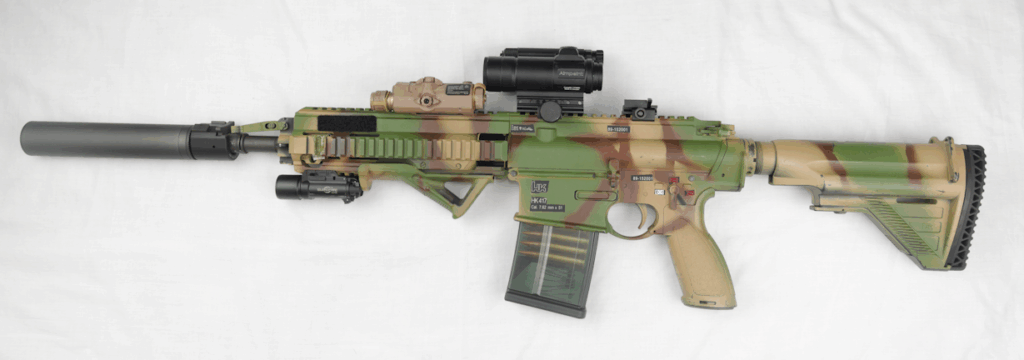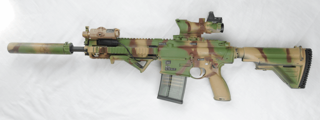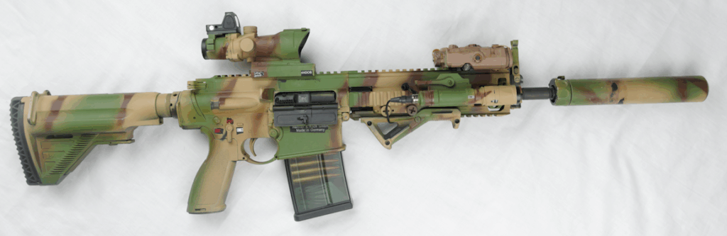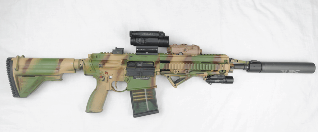 Next to that cherished SBS, there’s also a more classical look to the 12″ L2A1 photographed in all of the UKSF regiments hands for a decade now. It’s fully part of that iconic UKSF battle rifle look, right next to the G3KA4.