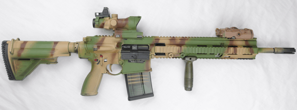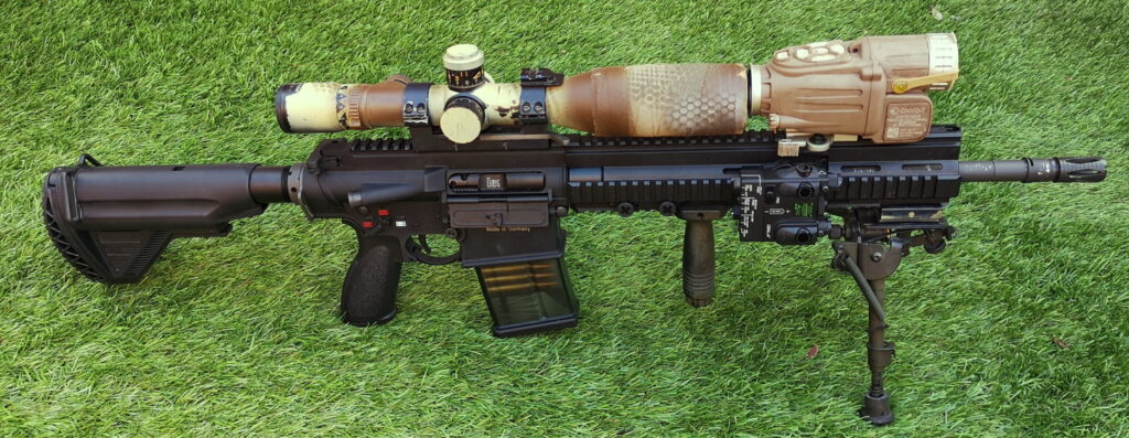 My favourite setup for the 16″ L2A1 has to be this one. Yet it’s also one I can’t get to properly finish since there aren’t any L17A1 / Schmidt & Bender 3-12×50 clone on the market. Having an extra Vector Optics Siegfried 3-12×50, I’ve found it better looking than the Spina Optics 2-12×44 when mounted on the HK417. My OCD allows it for now.
