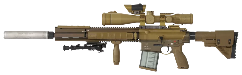 The Vector Optics Siegfried has the correct magnification rates, ring and size. However it features the wrong turrets, and an extra undesirable turret. At least contrary to the Kitagawa there are a handful of clones that will shine from this scope (considering minor turrets tweaking) : Norwegian army’s HK417, Irish sniper kits, Belgian army snipers, etc.