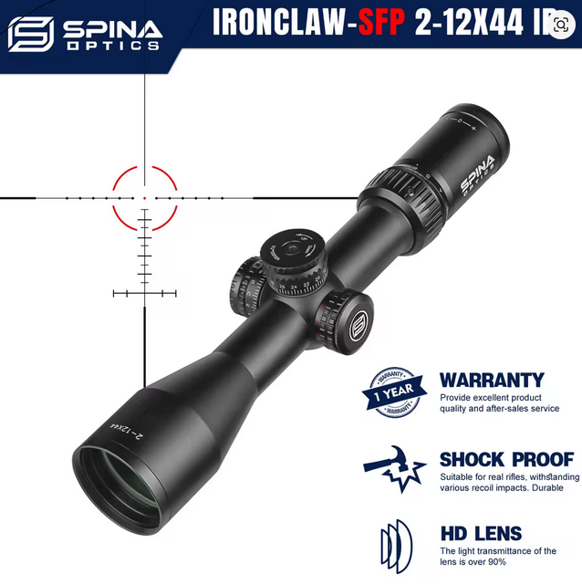 Chinese seller Spina Optics offered the solution I was looking for : the Ironclaw 2-12×44. It’s far from perfect. It’s not even remotely related to any S&B’s line of optics. Yet, the overall shape is fairly reminiscent, the turrets display a correctish height and while bulkier the magnification ring is in the rightish place.